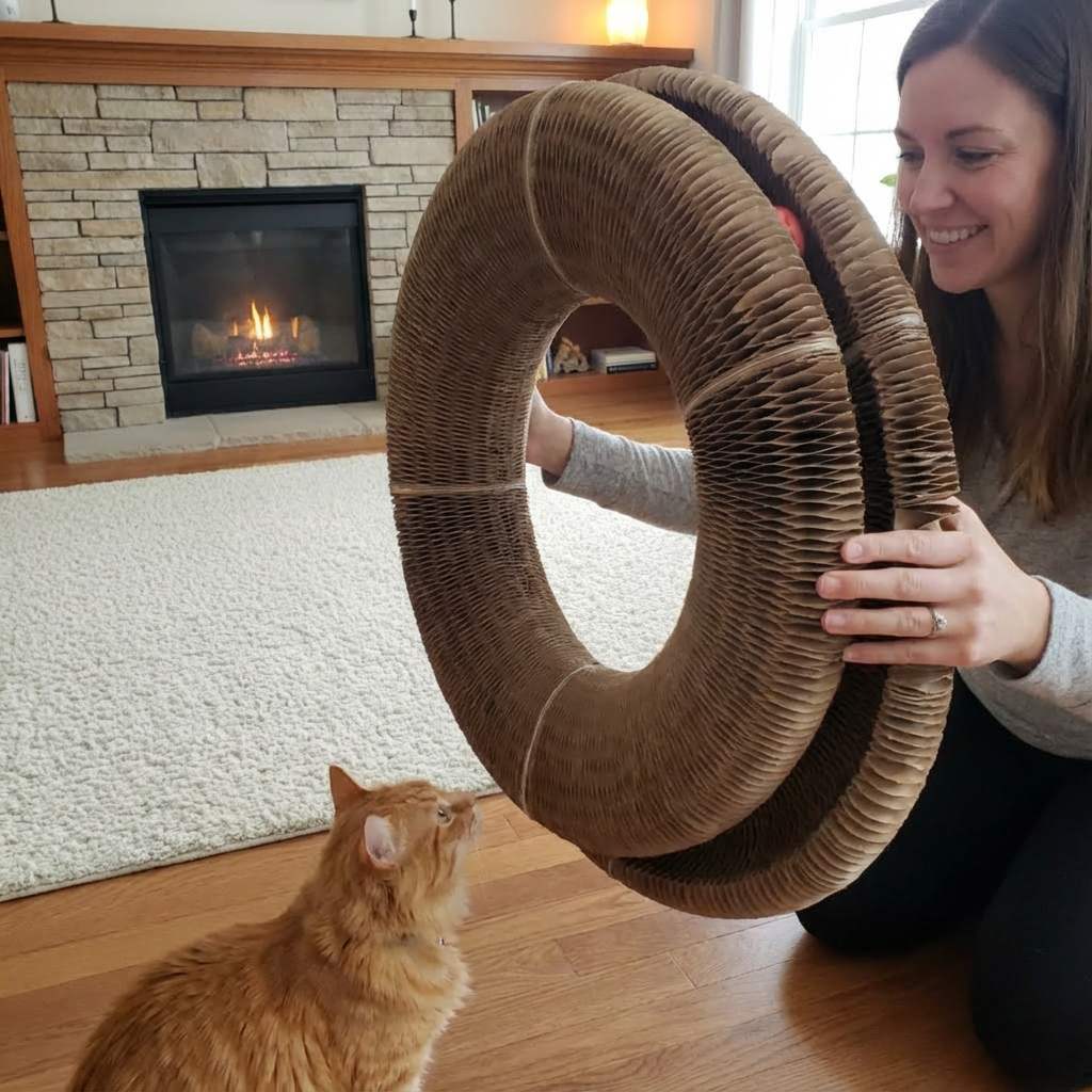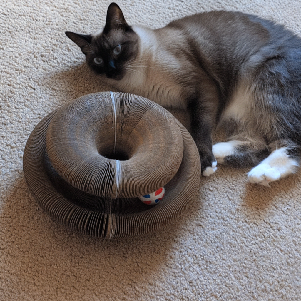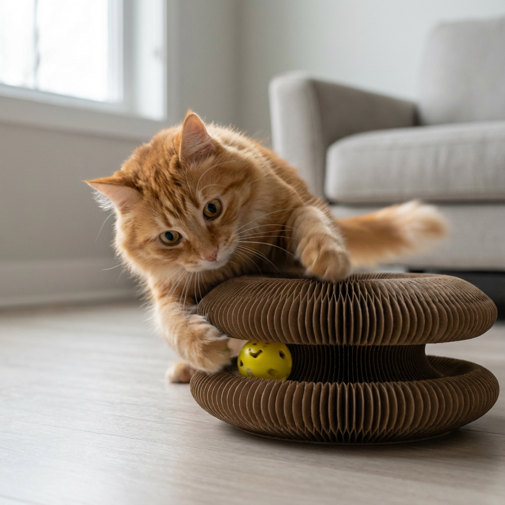 Yes – that’s one of the main reasons people keep it out all the time. The rough surface and built-in ball track give your cat a more satisfying outlet than couch arms or carpets. When they burn off energy hunting the ball earlier in the evening, they’re far more likely to sleep at night instead of waking you with zoomies and random chaos.