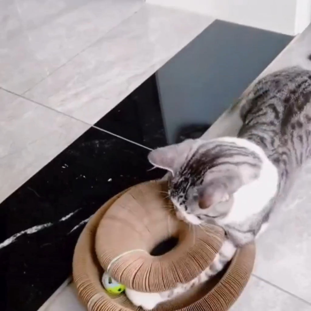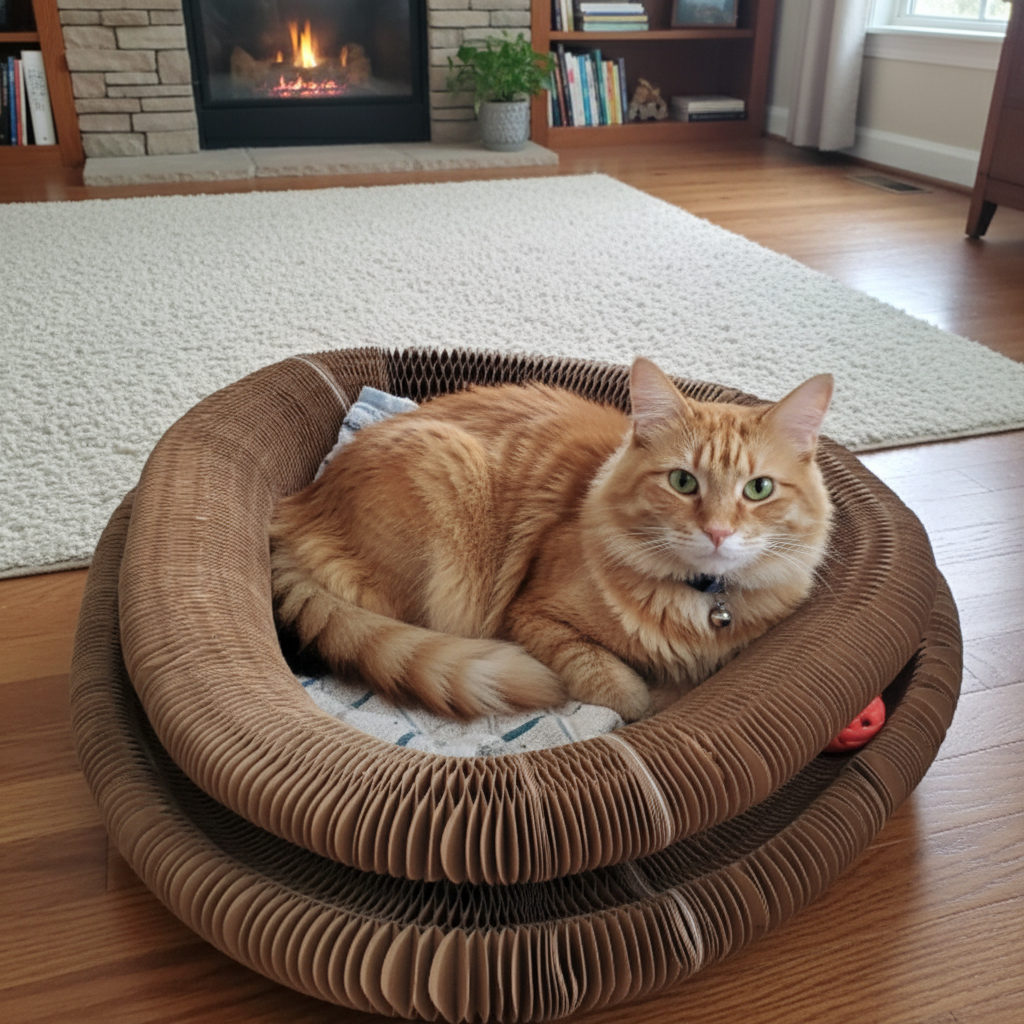 Whisker Maze uses thick, honeycomb-style cardboard designed to be scratched, pounced on, and slept on without collapsing immediately. The texture is satisfying on claws but gentle enough not to damage them. As with any cardboard scratcher, it will eventually wear down, but most customers are surprised by how long it holds its shape with daily use.